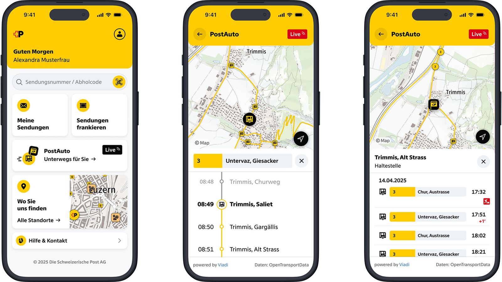 Stellen Sie sich vor, Sie stehen an der Haltestelle und fragen sich, wo Ihr Postauto gerade ist. Mit der neuen Post-App Preview erhalten Sie sofort eine Antwort! Die App zeigt Ihnen die Live-Standorte der Postautos in Echtzeit auf einer Karte. So können Sie genau sehen, wie nah das Fahrzeug an Ihrer Haltestelle ist und wissen, wann es ankommt. Das macht das Warten viel entspannter und Sie sind immer bestens informiert!