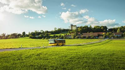 Jurapark Aargau, with its cherry trees and distinctive hilly terrain, is easily accessible by Postbus. Travel through a spectacular cultural landscape. Observe alternating pine forests, rough pastures, cherry trees and vineyards. The Argovia Jurapark is worth a visit at any time of year.